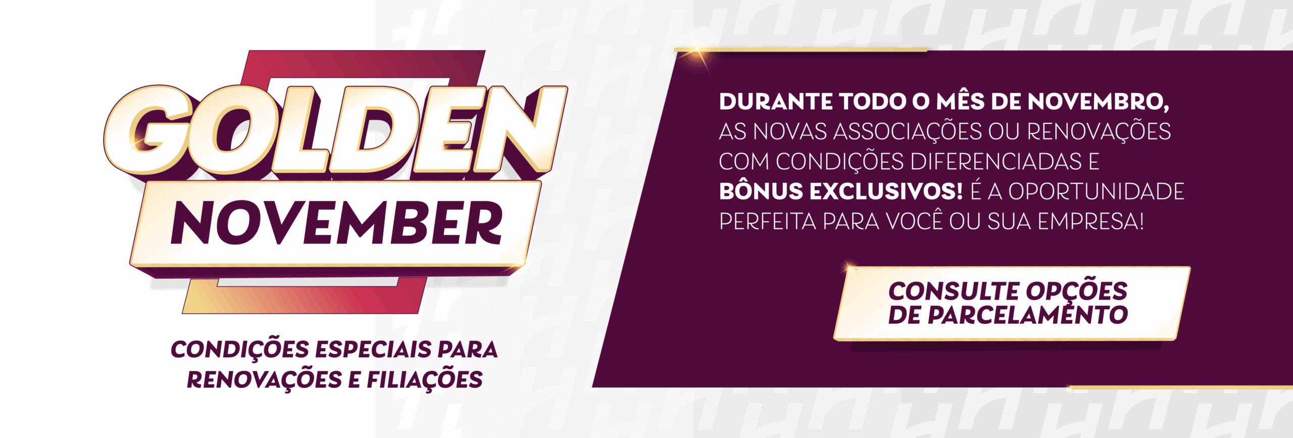 O Golden November da ABRH-SP tem validade até o dia 25/11. A ação não dá direito a descontos aos associados em período de renovação de outros meses.